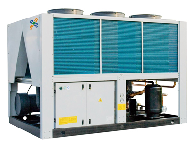风冷螺杆热泵机组是由压缩机——换热器——节流器——吸热器——压缩机等装置构成的一个循环系统。冷媒在压缩机的作用下在系统内循环流动。它在压缩机内完成气态的升压升温过程(温度高达100℃),它进入换热器后与风进行热量交换,被冷却并转化为流液态,当它运行到吸热器后,液态迅速吸热蒸发再次转化为气态,同时温度下降至零下20℃——30℃,这时吸热器周边的空气就会源源不断地将低温热量传递给冷媒。冷媒不断地循环就实现了空气中的低温热量转变为高温热量并加热冷水过程。